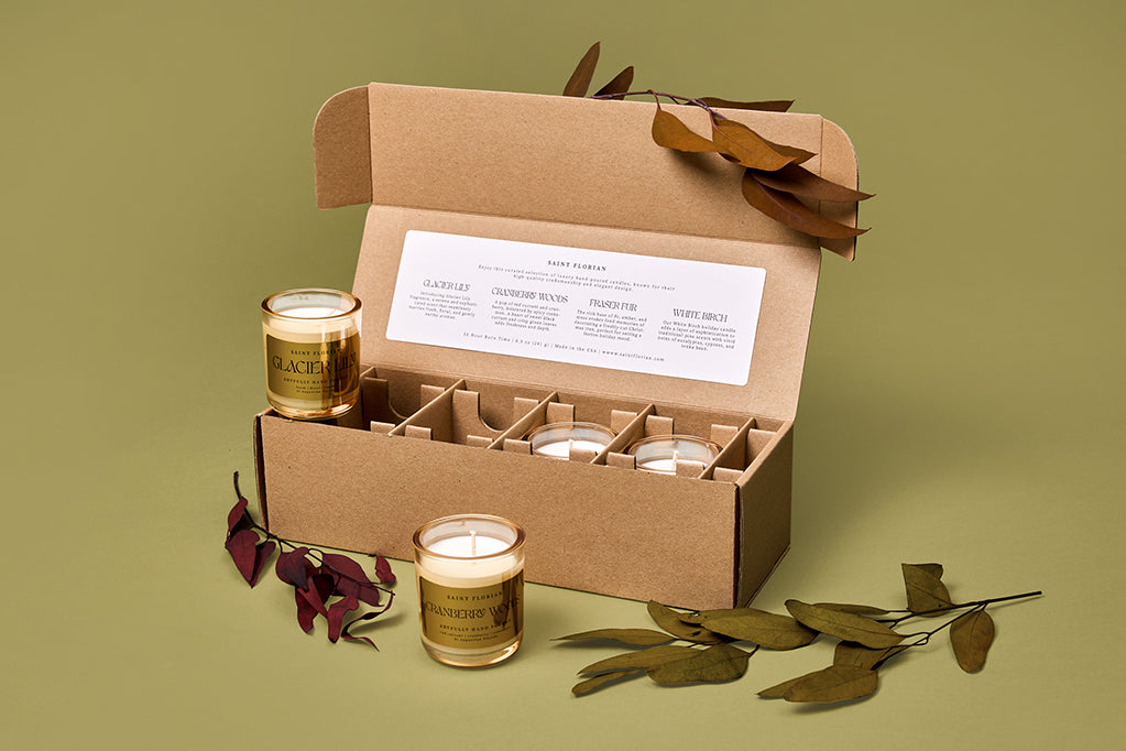 Osoy Candles 2 oz Candle Tin 6-Pack Shipping Box Discovery Kit made with Flush Packaging