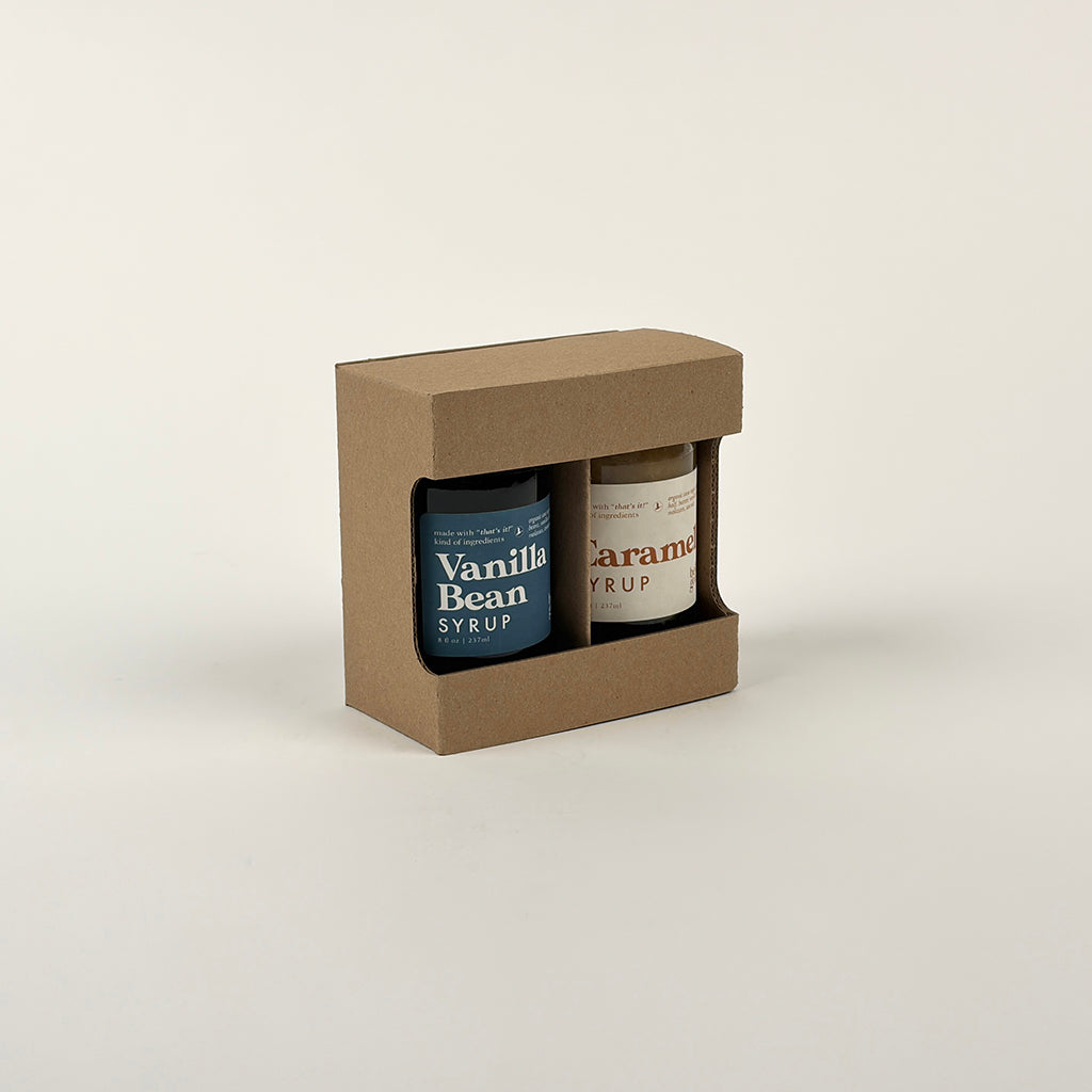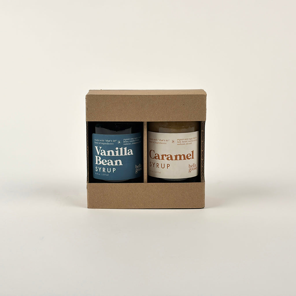 Bella Goose Coffee tasked us with creating a sturdy 2-pack retail box for their housemade coffee syrups.
