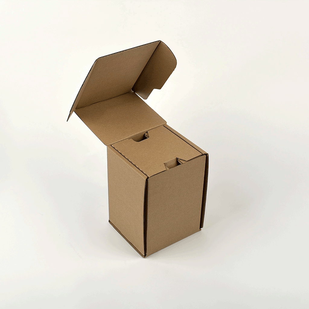 We were tasked with creating a simple, single-piece corrugated box that needed to provide enough protection so that it can be safely combined with other products within a shipment. A black barcode was printed on one end of the box and the remaining graphics were printed with white.