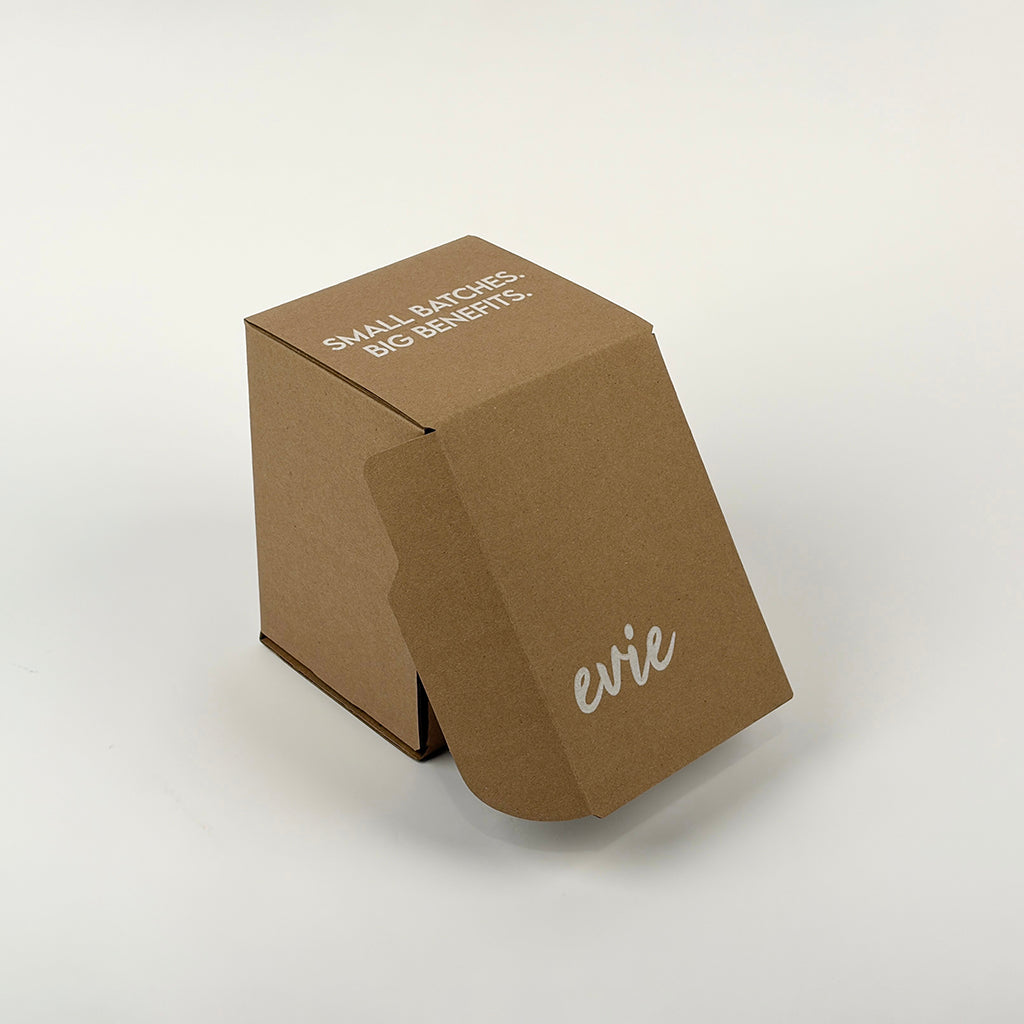 Evie Olive Oil needed a sturdy, standalone shipping box for their fragile olive oil bottle.